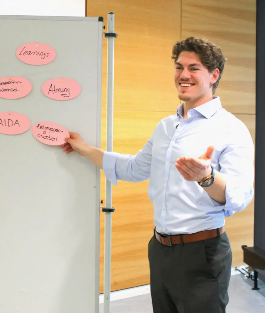 Wenn ich noch genauer darauf eingehen soll: Gegenwärtig versuche ich als Lagerfeuer-Gitarrist den Durchbruch zu schaffen. Außerdem singe ich sehr sehr gerne. Egal ob in der Fußgängerzone, unter der Dusche oder als Rausschmeißer auf der Hochzeit meiner Schwester. Sportlich liebe ich es, schwere Gewichte zu bewegen. Oder alles, was mit Bällen zu tun hat. Vor allem der Fußball hat mich in seinen Bann gezogen. Profi bin ich leider keiner geworden, weshalb ich nun das tun darf, was ich wirklich gut kann: Reden und den Menschen bei Ihrer Weiterentwicklung unterstützen. Last but not least: Meine wichtigen Bezugspersonen. Sie stellen den Fels in der Brandung dar und geben mir den wichtigen Halt in stürmischen Zeiten.